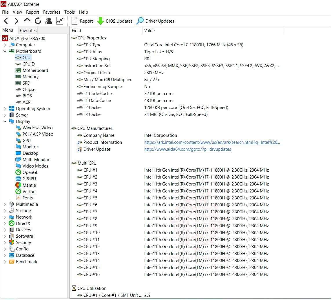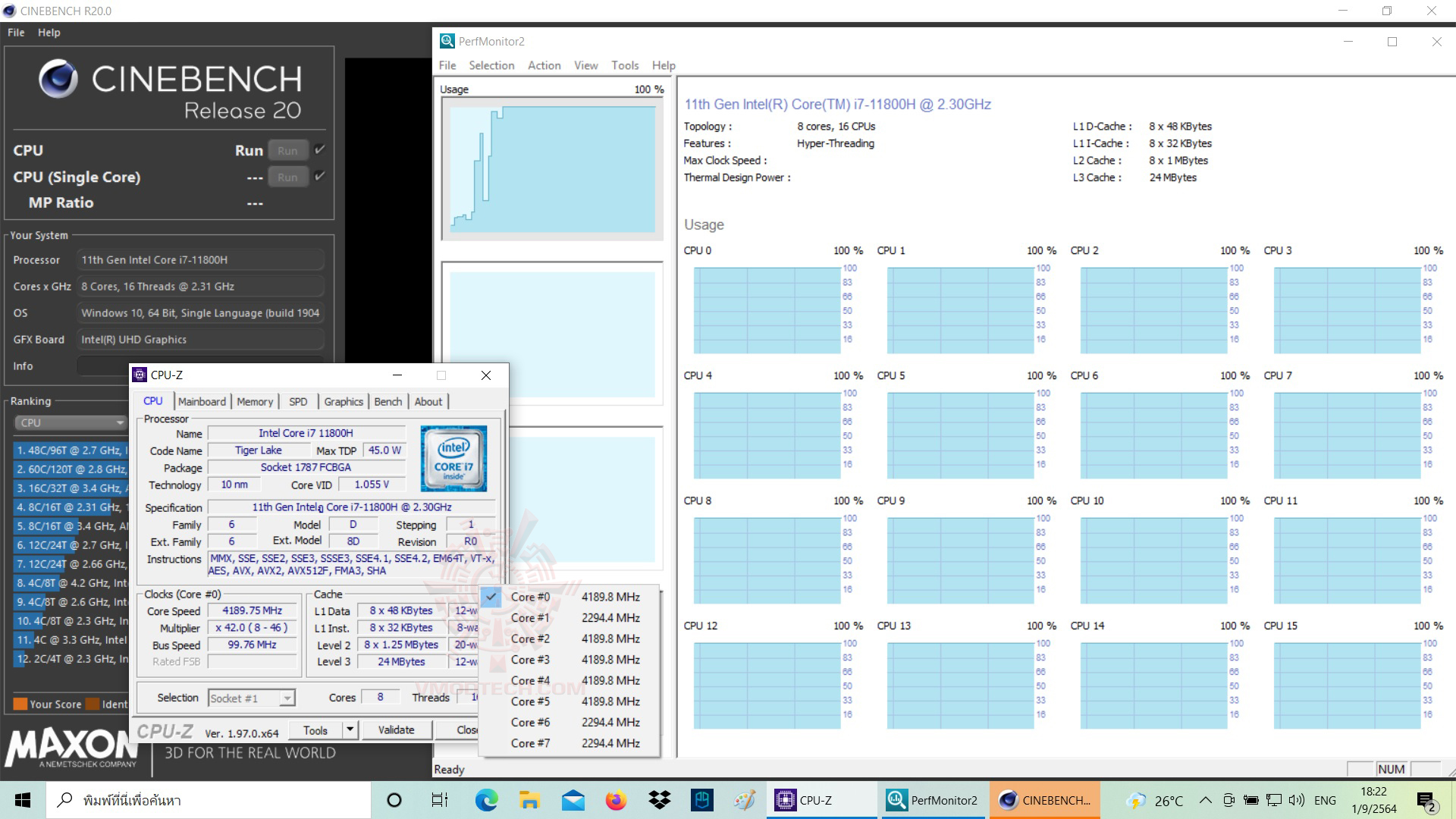 | .CPU | ..Intel Core i7-11800H 8C/16T ความเร็ว 2.3 GHz up to 4.6 GHz (8MB L2 cache, 24MB L3 cache) |
