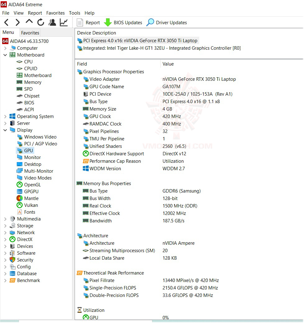 การ์ดจอเป็น Nvidia Geforce RTX 3050 Ti (4GB GDDR6) ประสิทธิภาพนั้นแรงเล่นได้ทุกเกมส์ในปัจจุบัน