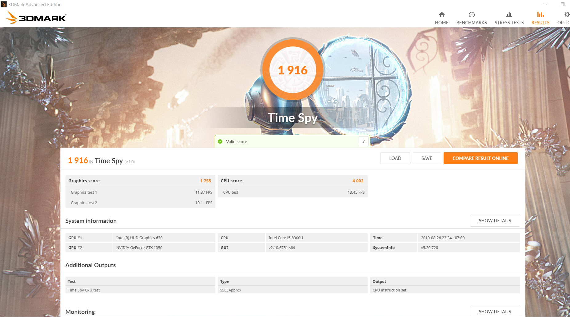 Time Spy DX12 อยู่ที่คะแนน 1916คะแนน แรงใช้ได้เลยครับ