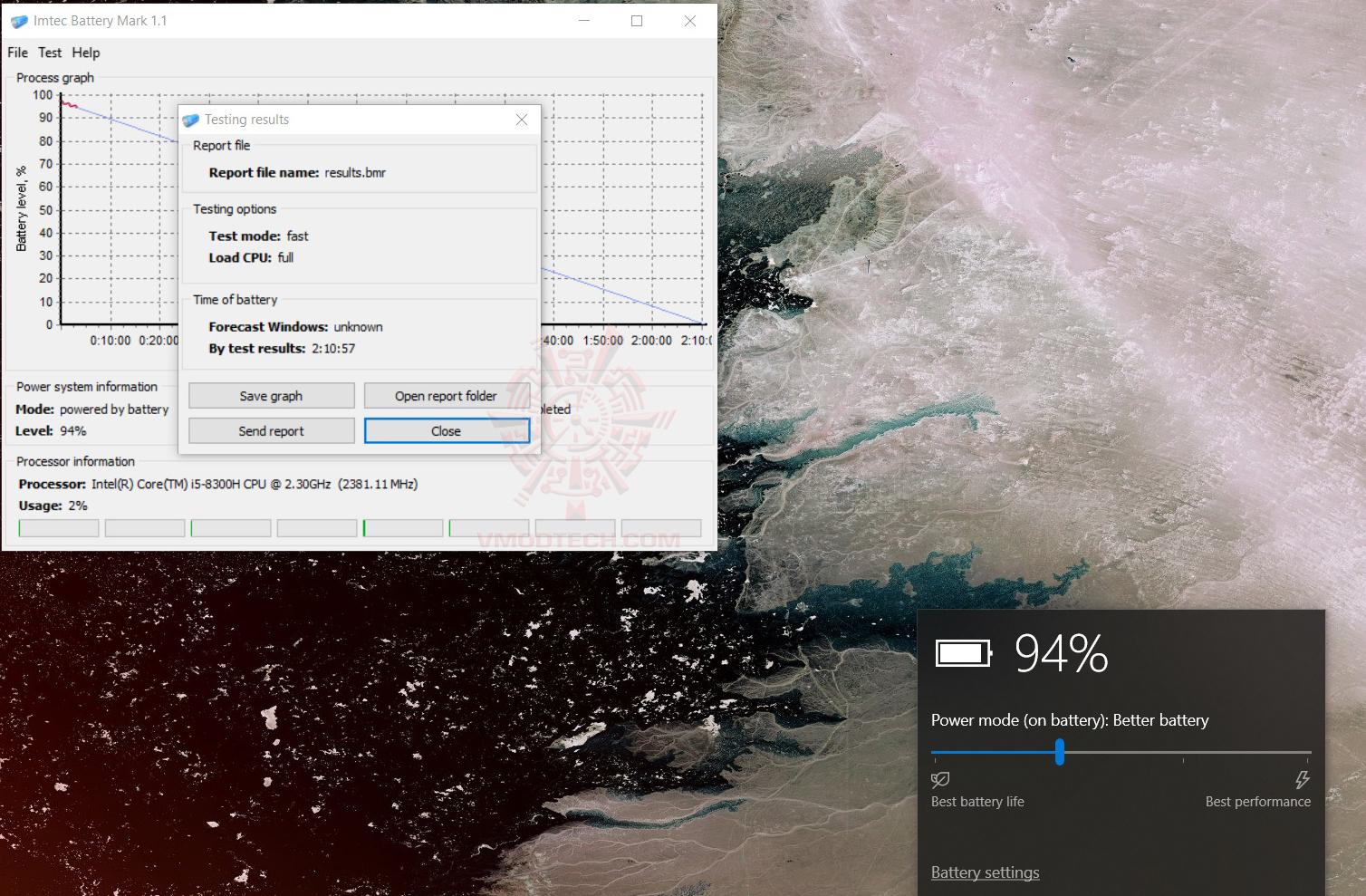 ในส่วนของการทำสอบแบตเตอรรี่ 94เปอร์เซ็นนี่ใช้ได้นาน 2ชั่วโมง 10นาทีครับ กับแบตเตอรรี่ 4Cell ถือว่านานพอสมควรเลยครับ