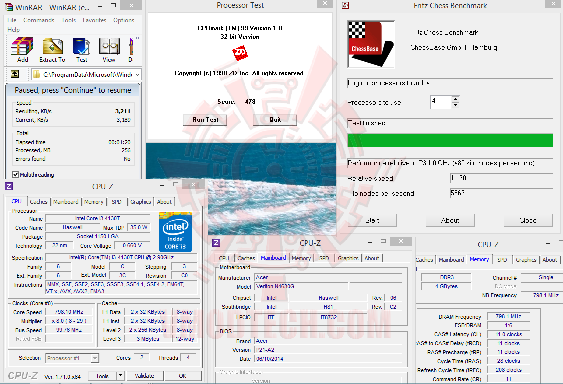 WinRAR Benchmark , CPUMark99, & Fritz Chess Benchmark