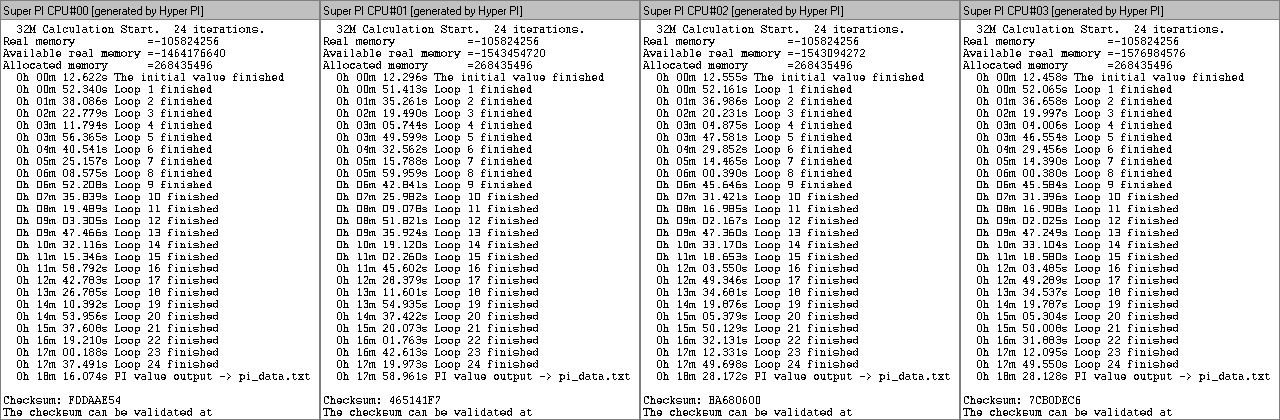 SuperPI 1M 1Thread, 32M 1Thred, 32M 4Thred