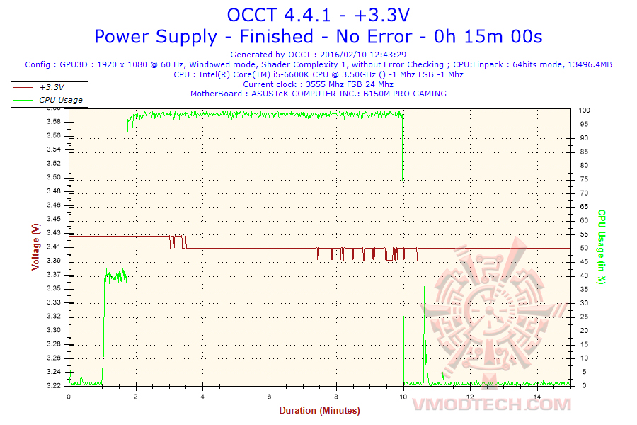 ไฟ +3.3V  ไม่มีโหลดอยู่ที่ประมาณ 3.43V ระหว่างมีโหลดตกลงมานิดหน่อยครับที่ 3.41V เท่าน้นเองถือว่าน้อยมากๆเลยครับ นิ่งสุดยอดจริงๆ
