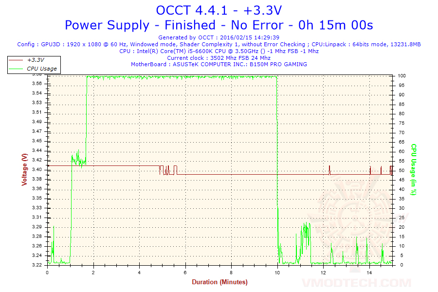 ไฟ +3.3V ไม่มีโหลดอยู่ที่ประมาณ 3.3.41V ระหว่างมีโหลดตกลงมานิดหน่อยครับที่ 3.39V เท่าน้นเองถือว่าน้อยมากๆเลยครับ ส่วนความนิ่งนี่สุดยอดครับ นิ่งดีมากๆจะมีขึ้นลงแค่ช่วงสั่นๆเท่านั้นเอง