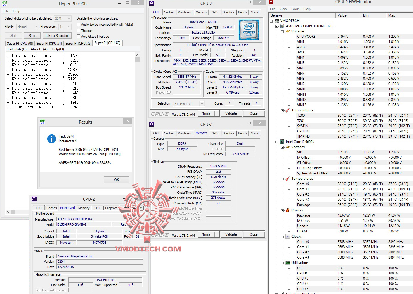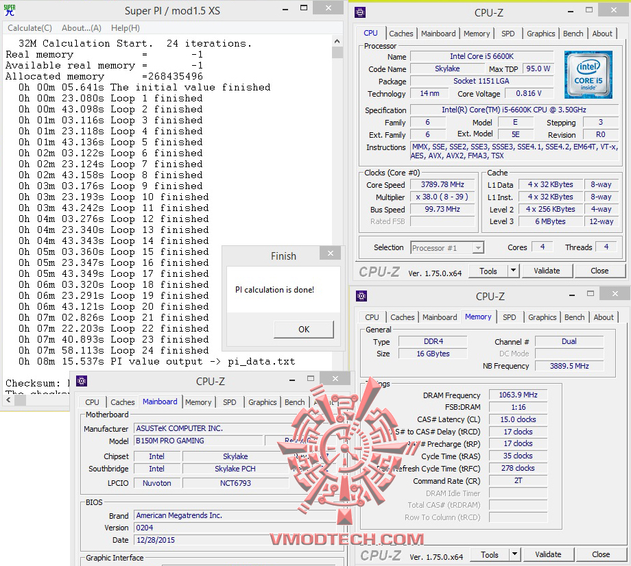 ASUS B150M PRO GAMING REVIEW : SuperPI 1M 1Thread, 32M 1Thread & 32M 8Threads (4/8)