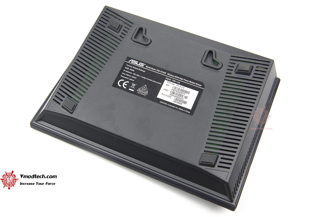 หงายด้านล่างของ ASUS DSL-N12HP ก็จะเห็นการออกแบบให้ตัวถังนั้นถูกยกขึ้นช่วยระบายความร้อน