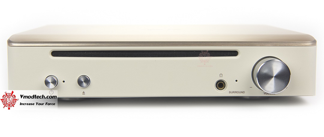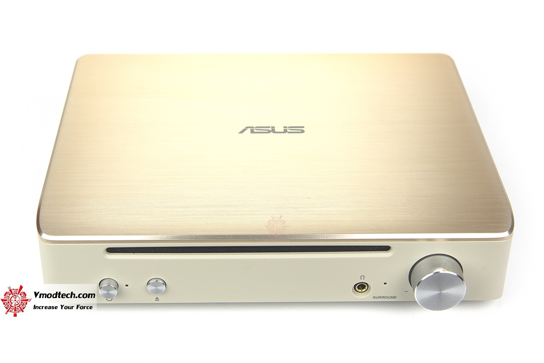 ด้านหน้าของ ASUS Impresario SBW-S1 PRO นั้นจะมีปุ่มเปิด/ปิด ปุ่มดันแผ่นออก ด้านขวาก็จะมีช่องเสียบหูฟังและโวลุ่มสำหรับเร่ง/ลดความดัง