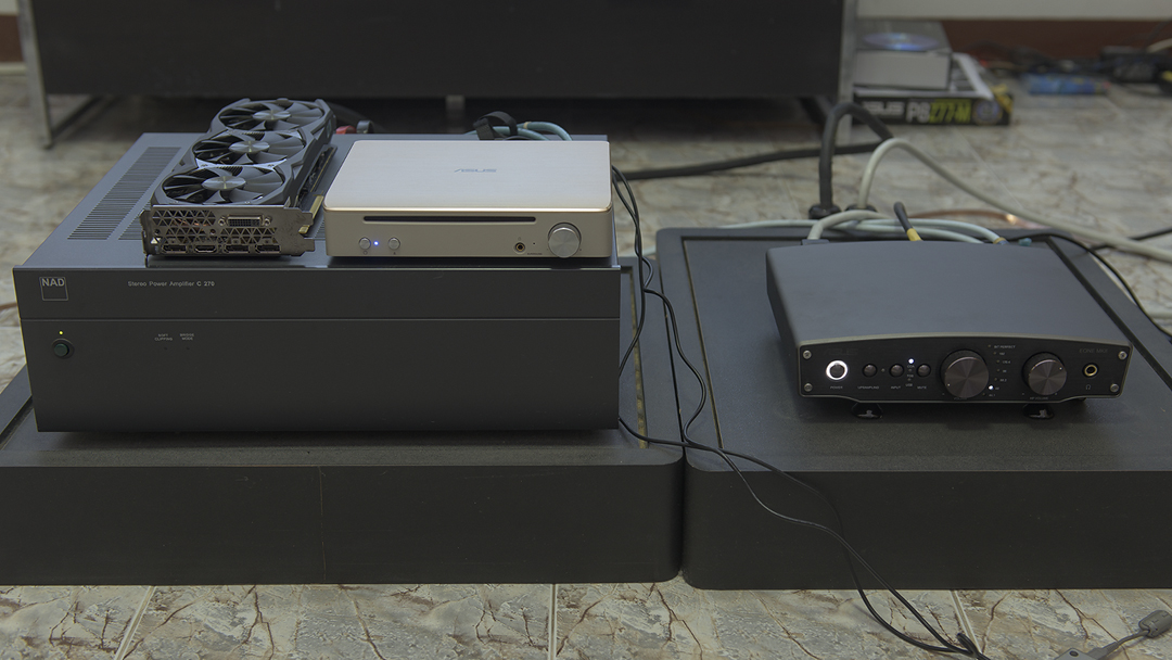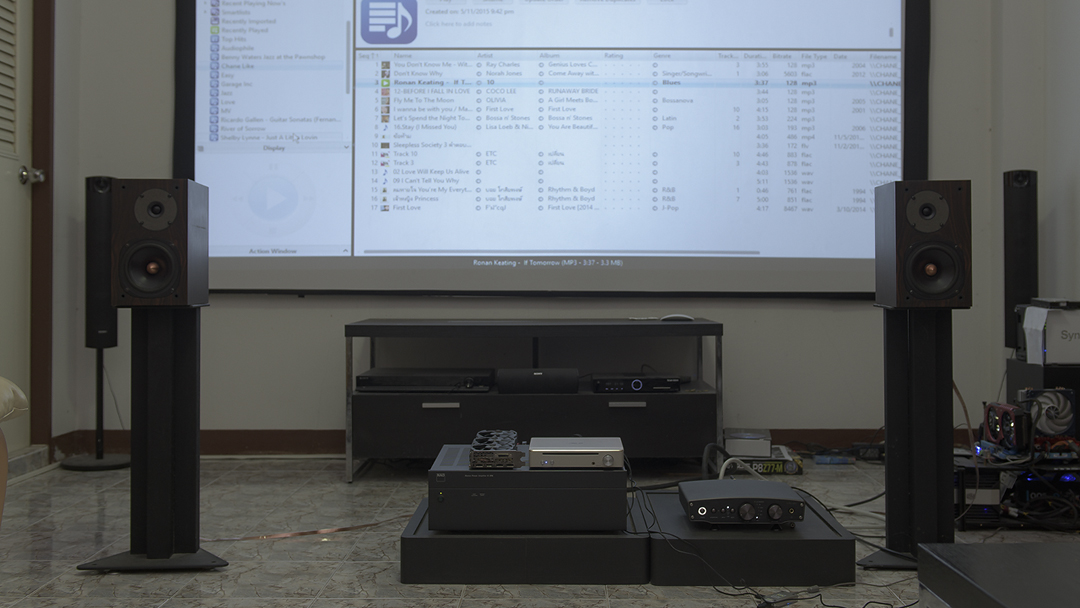 เล่นกันง่ายๆด้วยการลากสาย USB จากคอมมาที่ตัว ASUS Impresario SBW-S1 PRO แล้วปล่อยเอาท์พุทไปที่พาวเวอร์แอมป์ 120 วัตต์ แล้วผ่านไปยังลำโพง ProAc Tablette 50 Signature ฟังเปรียบเทียบเสียงกับ ASUS Xonar E One MKII ภายในห้องขนาด 3.9 x 7.5 เมตร