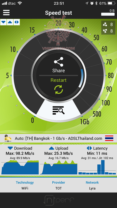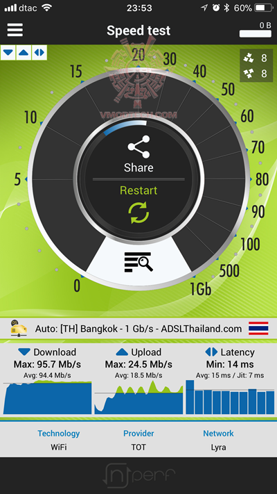 ที่ใกล้ๆกับ Lyra ตัวแรกนั้น ได้ความเร็วตามเนตบ้านผู้ทดสอบเลยครับคือ 98.2/25.3 download/upload