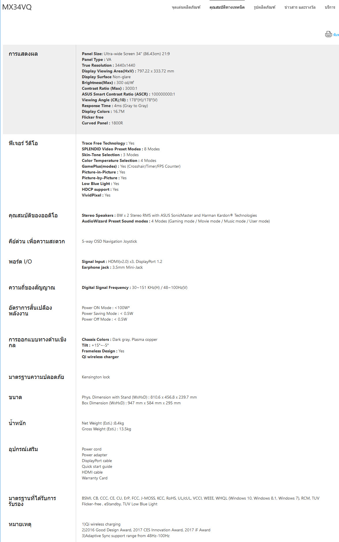 สวัสดีครับในช่วงเวลาที่จอแสดงผลได้รับอิทธิพลจาก Gaming นั้น การออกแบบและพัฒนาก็ได้มุ่งเน้นไปที่สีสรรที่คมชัด รีเฟรชเรทที่สูงกว่า อัตราส่วนที่กว้างกว่า ทั้งหมดก็เพื่อตอบสนองคอเกมส์ในยุคปัจจุบันอย่างแท้จริง และ ASUS นั้นก็ได้พัฒนาจอสำหรับคอเกมส์ออกมาในรูปแบบที่เป็นโจทย์นี้อยู่ด้วย ซึ่งก็เป็นที่มาของรีวิวในวันนี้ ครับ วันนี้เรามี ASUS MX34VQ นั้นเป็นจอมอนิเตอร์ขนาด 32" แบบ Ultra Curve มีสัดส่วนหรือแอสเปกเรโชที่ 21:9 เรสโซลูชั่น UWQHD หรือ 3440x1440 refresh rate ได้สูงสุดที่ 100Hz มันมีคอนทราสเรโชที่ 3000:1 มีแท่นชาร์จแบบ Qi Charger ซึ่งสามารถชาร์จแบบไร้สายได้ ลำโพงที่ถูกติดตั้งนั้นออกแบบโดย ฮาร์แมน การ์ดอน ทั้งหมดนั้นบรรจุอยู่บนการออกแบบที่สวยงามมาก มาชมรายละเอียดกันต่อเลยครับ