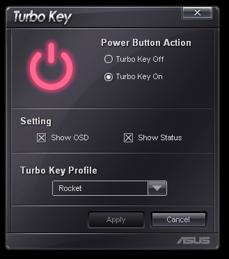 มาดูเจ้าโปรแกรม Turbo Key กันมั่ง ตัวโปรแกรมนี้เป็นเหมือนปุ่มบูสท์เพิ่มความเร็วจะว่าไปแล้วเหมือนยิงไนตรัสมากกว่านะเนี่ย..อิอิ ใช้งานโดยการเลือก Turbo Key On ก่อนแล้วเลือกโปรไฟล์เอาไว้ให้เรียบร้อย กดapplyแล้วปิดหน้าต่างไปได้เลยตัวโปรแกรมจะรันอยู่ที่มุมขวาล่าง ถ้าคุณต้องการเพิ่มความเร็วเพื่อตอบสนองการใช้งานที่เพิ่มขึ้นก็เพียงแค่กดสวิทช์เปิด/ปิดหน้าเคส1ครั้ง แล้วรอซักพักระบบจะไปเลือกโปรไฟล์ที่ตั้งเอาไว้มาใช้งาน ถ้าต้องการย้อนสู่ความเร็วก่อนหน้าก็กดสวิทช์อีก1ครั้งเช่นกัน น่าจะถูกใจคนชอบใช้เดิมๆแล้วนึกอยากมันส์เพิ่มความแรงที่มาสามารถสั่งได้เพียงแค่ปลายนิ้วนะครับสำหรับโปรแกรมที่กล่าวมาทั้งหมดนี้