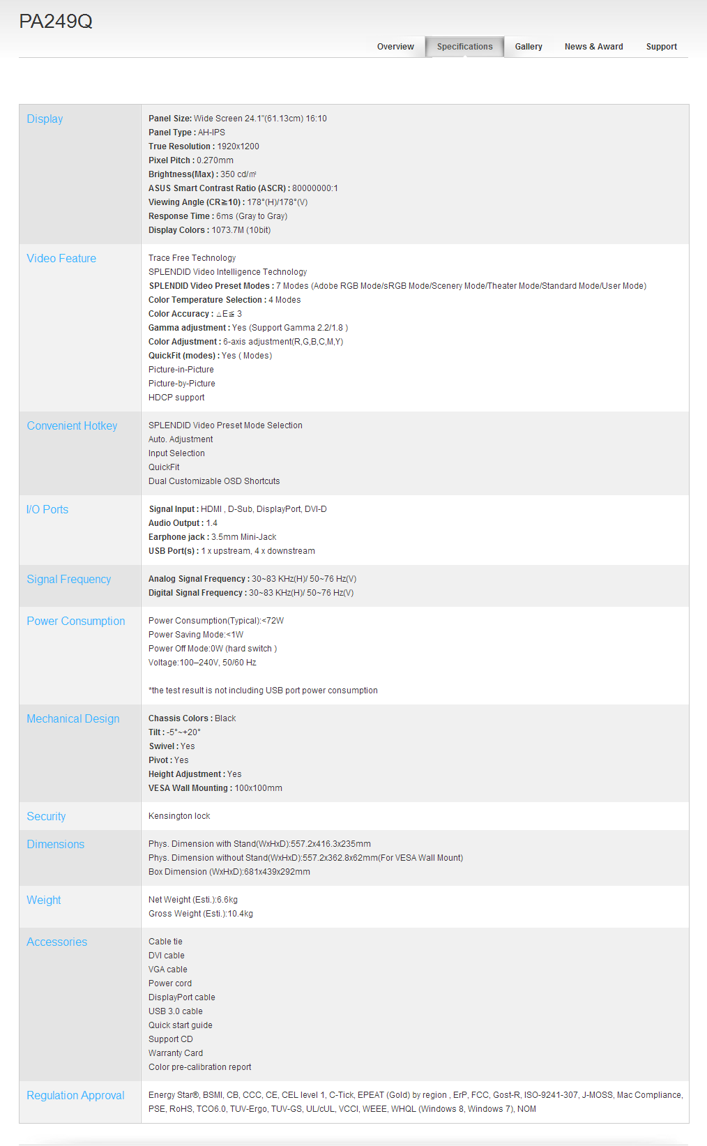 ASUS ProArt Series LED Monitor PA249Q เป็นจอมอนิเตอร์ที่มีรายละเอียดดั้งนี้ครับ
