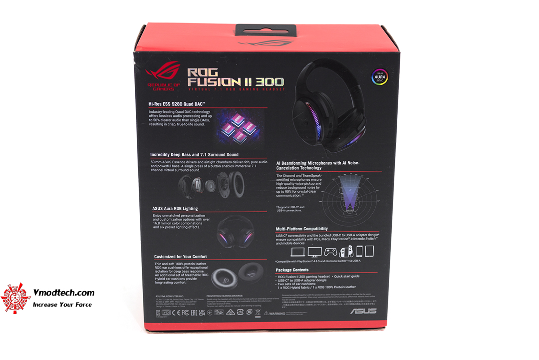 สวัสดีครับ วันนี้เรามีหูฟัง เกมส์มิ่งเฮดเซตจากเอซุสมารีวิวให้ได้ชมกันครับ โดยวันนี้จะเป็นหูฟัง ASUS ROG Fusion II 300 สำหรับหูฟังเกมส์มิ่งรุ่นนี้นั้นจะเป็นหูฟังที่ใช้การเชื่อมต่อผ่าน USB Type-C มี DAC ในตัวที่ทาง ASUS แจ้งว่า ESS 9280 ตอบสนองความถี่ตั้งแต่ 20 - 40,000 Hz สามารถจำลองเสียงรอบทิศทาง 7.1 ช่องเสียง น้ำหนักของตัวหูฟังนั้นค่อนข้างเบาครับที่ 310 กรัมเมื่อเทียบกับขนาดตัวที่เห็น มีแสงสี RGB ที่สามารถเลือกปรับแต่งได้จาก ASUS Software เรามาชมรายละเอียดกันก่อนเลยครับ
