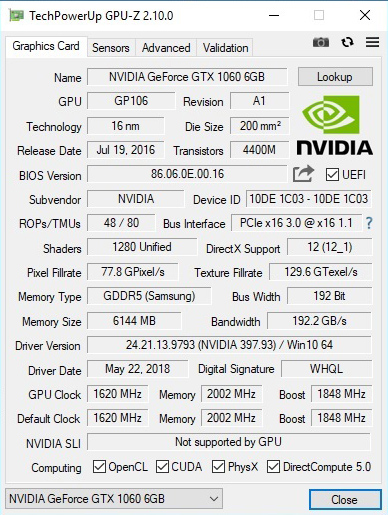 กราฟฟิกการ์ดเป็น PALIT GTX 1060 6GB ตัวแรงครับ