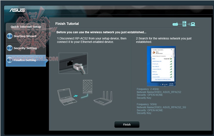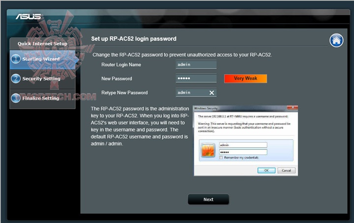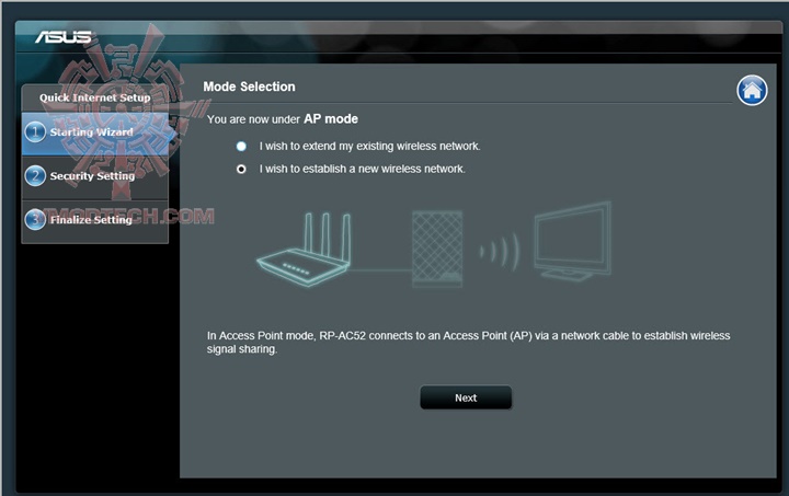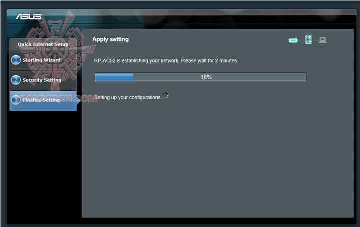 เริ่มแรกเราต้องทำการเซตค่าต่างๆก่อนทำการเริ่มใช้งานโดยการเสียบ ASUS RP-AC52 เข้ากับปลั๊กไฟแล้วเชื่อมต่อสายแลนเข้าไปยังคอมพิวเตอร์ หลังจากนั้นก็สามารถเข้าไปเซตค่าได้จาก repeater.asus.com ครับ มันก็จะเด้งเข้าหน้า wizard มาช่วยติดตั้ง