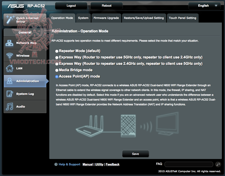 เราสามารถเลือกที่จะให้ ASUS RP-AC52 จับสัญญาณ Wifi แล้วกระจาย Wifi ต่อหรือจะลากสายแลนไปช่วยกระจาย Wifi ในจุดต่างๆก็ได้