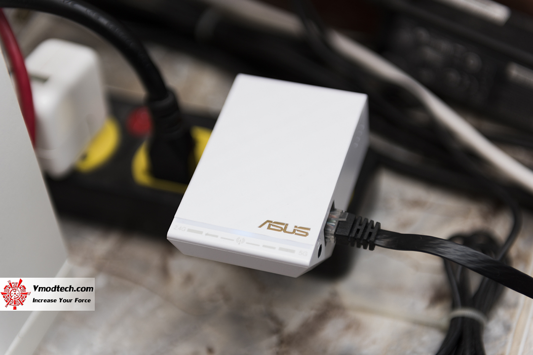 การทดสอบนั้น เราเริ่มต้นที่เชื่อมต่อสายแลนจาก Synology RT1900AC ไปยัง ASUS RP-AC52 ที่เสียบอยู่กับเต้ารับ และใช้ Notebook ทำการเชื่อมต่อ Wifi จาก ASUS RP-AC52 ครับ