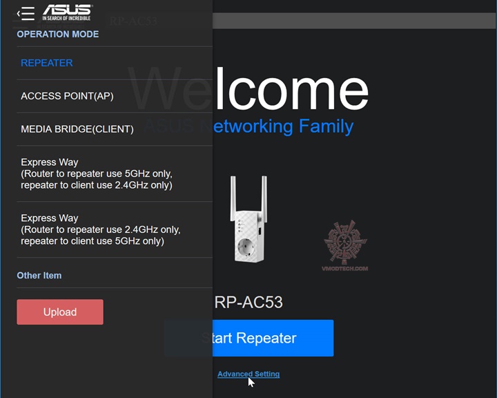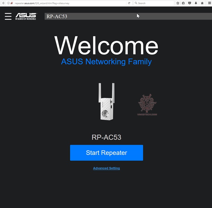 เมื่อทำการเสียบสายจากตัว RP-AC53 แล้ว ให้เราพิมพ์ repeater.asus.com ในเว็บบราวเซอร์ หน้าจอ Wizard ก็จะเด็งขึ้นมา