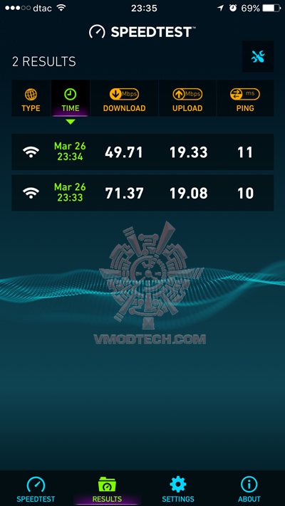 หลังจากติดตั้งเสร็จ ผมลองใช้โทรศัพท์ทำการเชื่อมต่ออินเตอร์เนตผ่านทาง Wifi ทางย่าน 5.0 GHz ดู ด้านบนเป็นผลจากการเทสผ่าน RP-AC53 ส่วนด้านล่างเป็นผลเทสที่โทรศัพท์วิ่งตรงๆไปเราเตอร์นะครับ โดยระยะทดสอบคือประมาณ 30 เซนติเมตร จุดสังเกตุคือตัว RP-AC53 นั้นจะสามารถเล่นเนตได้เพียง 53 เมกกะบิตต่อวินาทีเท่านั้น หากเทียบกับวิ่งตรงๆก็จะได้ความเร็วน้อยกว่าประมาณ 30 % แต่ก็ไม่ใช่วัตถุประสงค์หลักครับ เราคงไม่วางรีพีตเตอร์ไว้ตรงนี้แน่ๆ
