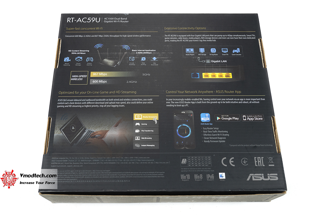 กล่องบรรจุ ASUS RT AC-59U V2 นั้นมีขนาดปานกลางด้วยโทนสีแบบใหม่ครับ สบายๆที่เน้นให้ดูผ่อนคลาย ด้านกลังกล่องนั้นก็มีการอธิบายคุณสมบัติหลักเอาไว้ให้พิจารณาอย่างชัดเจนถึงคุณสมบัติที่มีมาในตัว