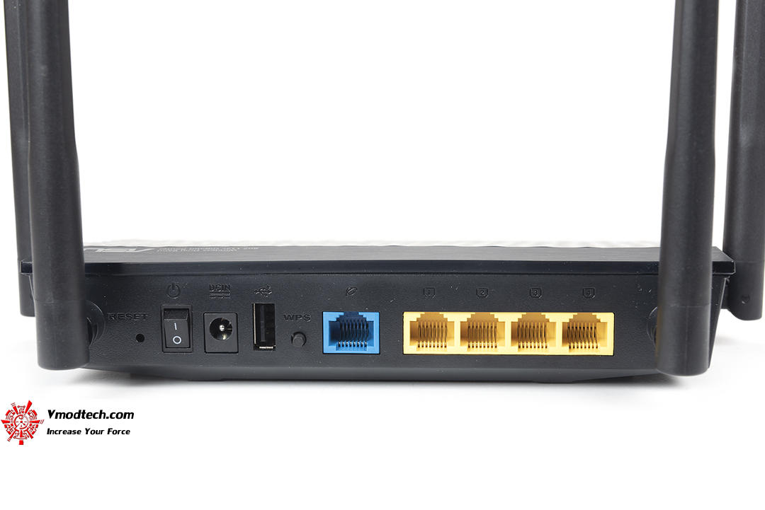 ด้านหลังนั้นจะเป็นพอร์ทเชื่อมต่อหลักของ ASUS RT AC-59U V2 โดยจากซ้ายไปขวาจะมีช่องเล็กๆสำหรับ reset ปุ่มเปิดตัวเครื่อง ช่องเสียบไฟเลี้ยง ช่องเสียบ USB 2.0 ปุ่ม WPS ถัดมาจะเป็นช่อง wan และ gigabit lan ทั้งหมด 4 ช่องครับ