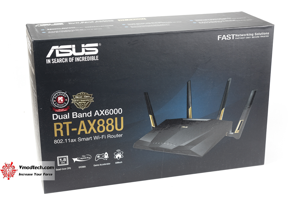 กล่องบรรจุ RT-AX88U นั้นใหญ่โตเอาเรื่องครับ น้ำหนักก็ตึงมือเอาเรื่องเลย ด้านกลังกล่องนั้นก็มีการอธิบายคุณสมบัติหลักเอาไว้ให้พิจารณาอย่างชัดเจนถึงคุณสมบัติที่มีมาในตัว