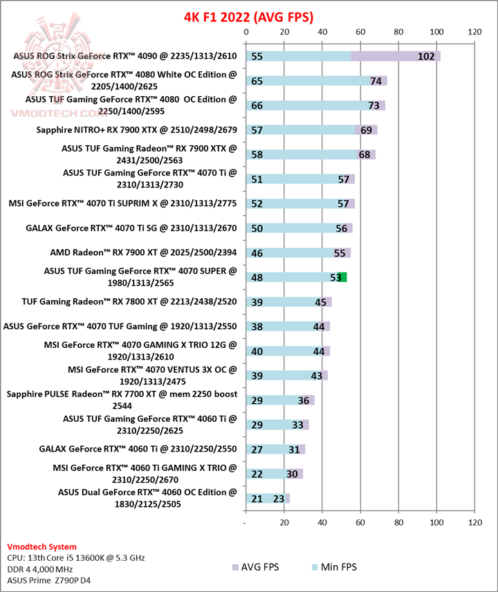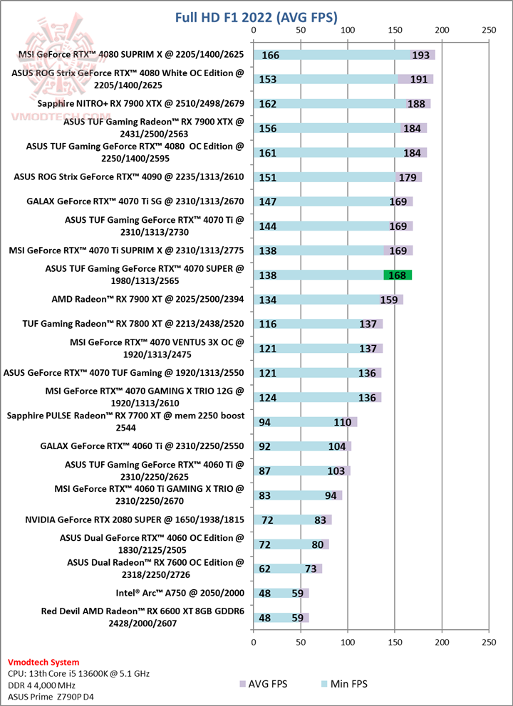 ASUS TUF Gaming GeForce RTX™ 4070 SUPER 12GB GDDR6X Review : F1 - 2022 Benchmark (16/18)
