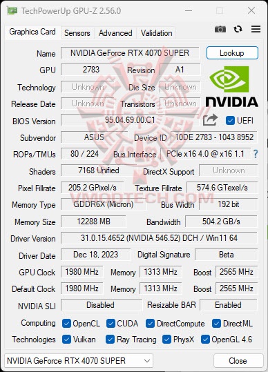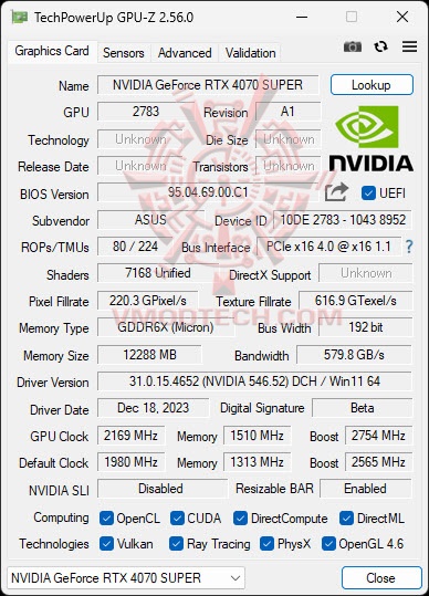 ASUS TUF Gaming GeForce RTX™ 4070 SUPER from GPUZ