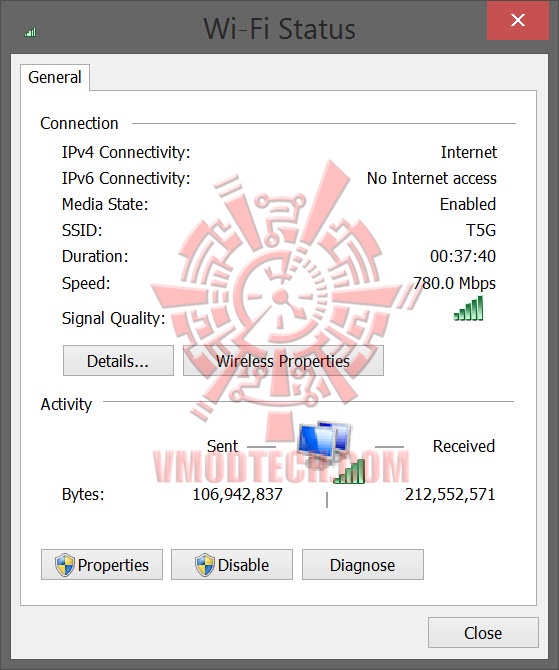 หลังจากการเชื่อมต่อ สปีดในการเชื่อมต่อที่ล๊อกได้อยู่ที่ 780 เมกกะบิทต่อวินาที