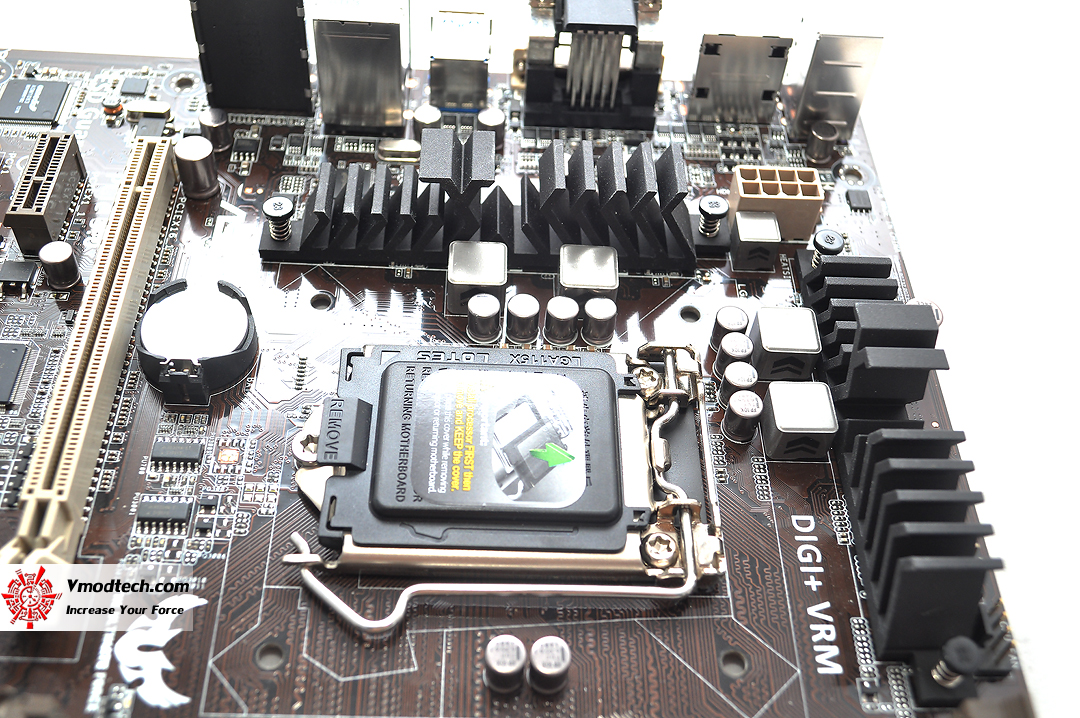 ซ๊อกเก็ต LGA1150 รองรับซีพียู SIntel® Socket 1150 for 4th Generation Core™ i7/Core™ i5/Core™ i3/Pentium®/Celeron® Processors Supports Intel® 22 nm CPU เฟสไฟให้กันมา 4+1เฟส DIGI+ VRM Digital Phase Power Design พร้อมด้วยฮีตซิงค์ทั้งสองฝั่ง
