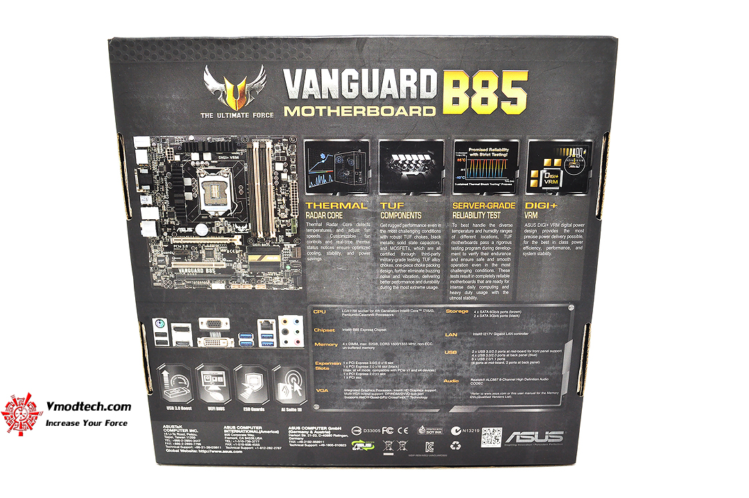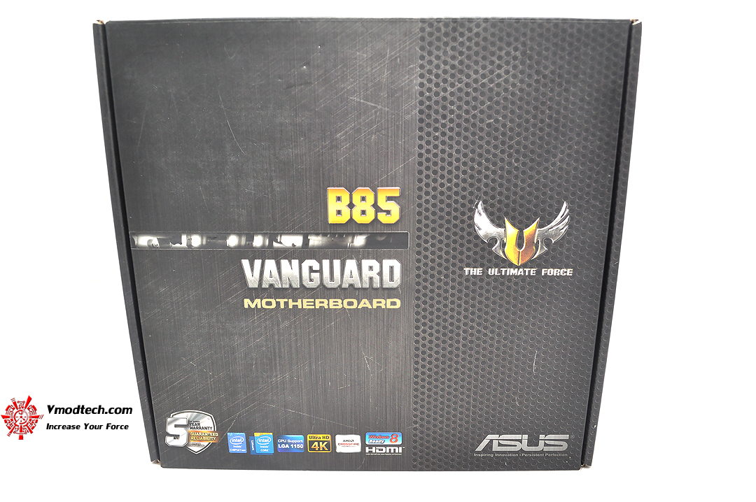 มากันในกล่องสีดำพร้อมบอกชื่อรุ่น ASUS VANGUARD B85