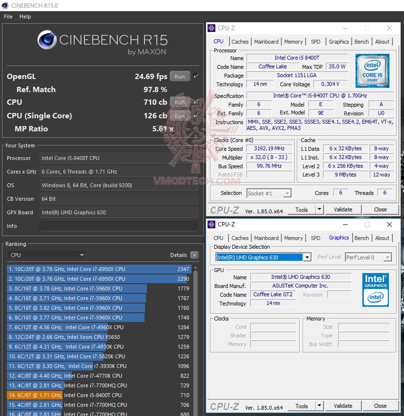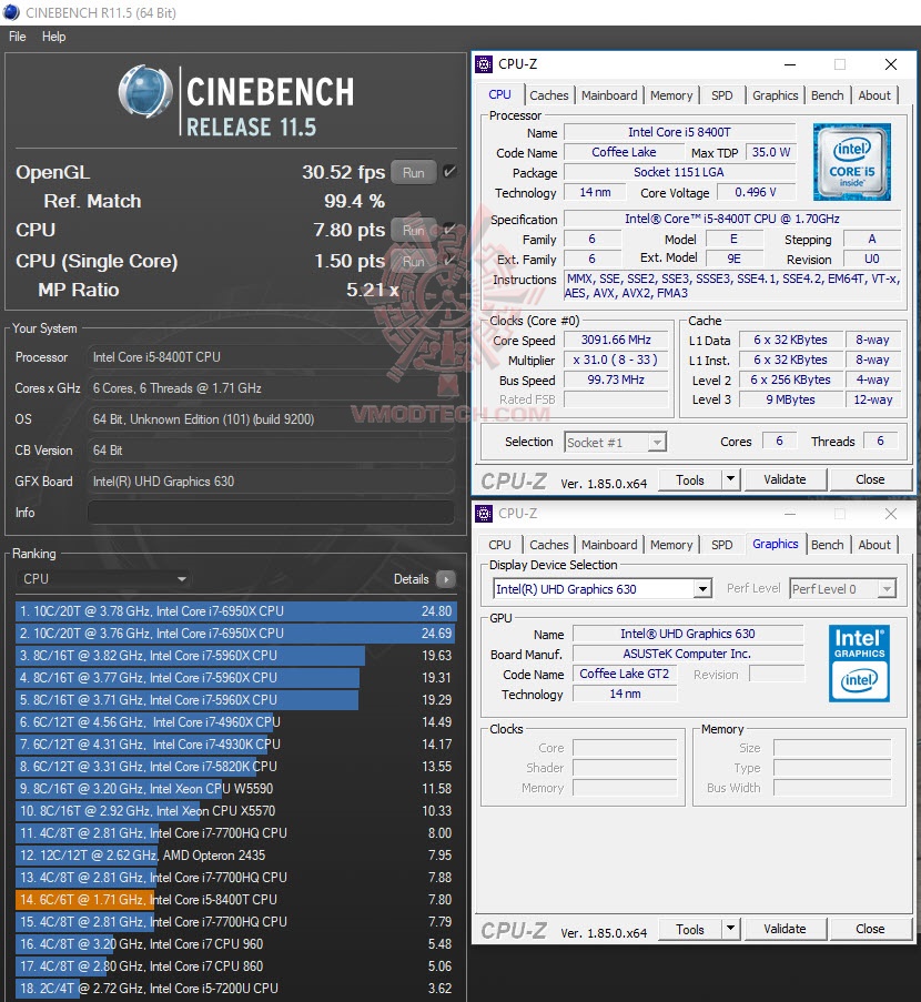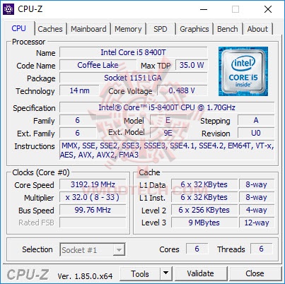 CPU ที่ใช้จะเป็น Intel® Core™ i5 8400T ที่มีจำนวน 6 คอร์ 6 เธรดการทำงานและมี cache L3 ขนาด 9 เมกกะไบท์