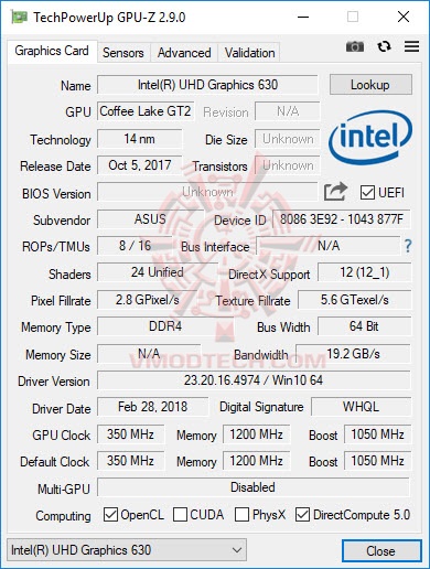 กราฟฟิกการ์ดนั้นเป็น iGPU Intel UHD Graphic 630 ครับ