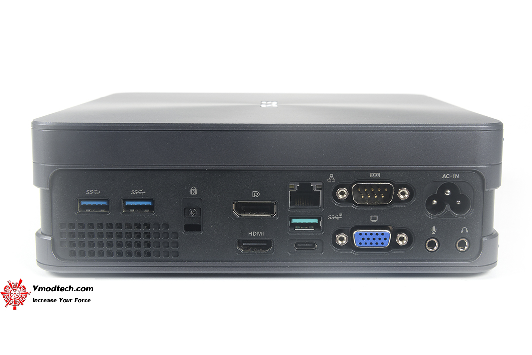ด้านหลังของตัวเคสก็จะเป็นบริเวณพอร์ทการเชื่อมต่อทั้งหมด และตัว VivoMini VC65C1 จะไม่ต้องใช้ adapter นะครับ เสียบสายไฟที่มีหัวกลมๆแบบในรูปเข้าตัวเครื่องได้เลย