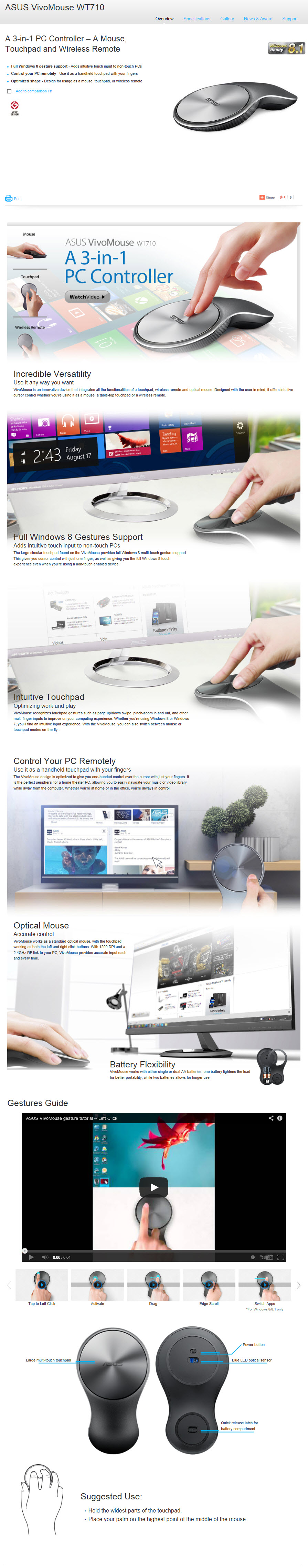 จริงๆแล้วผมอยากแนะนำให้สมาชิกเข้าไปชมรายละเอียดและการทำงานของเจ้า ASUS VivoMous จากหน้าเว็บไซด์ผู้ผลิตครับ เค้าเดมอนสเทรทไว้ได้น่าชมมากเลย