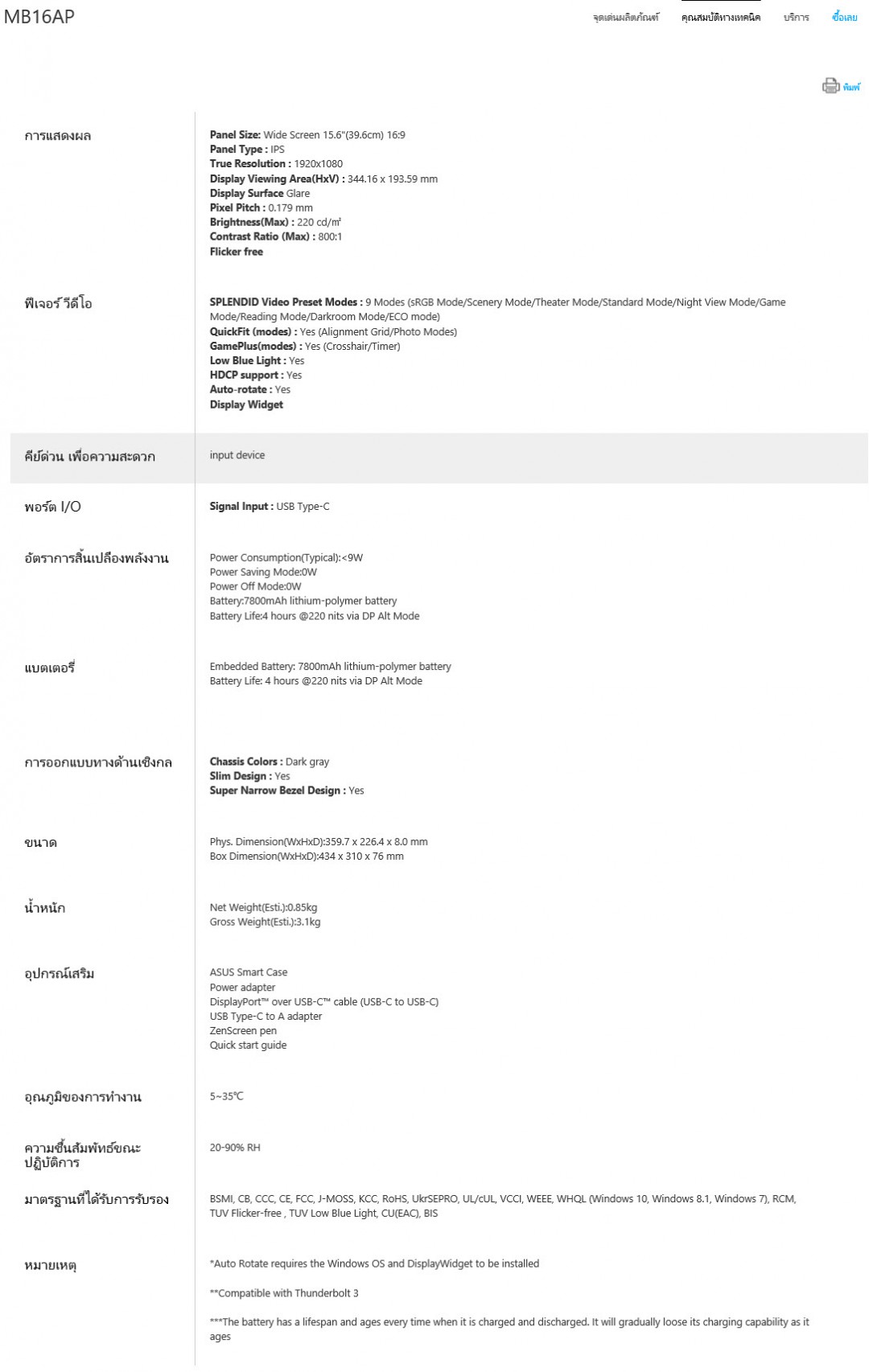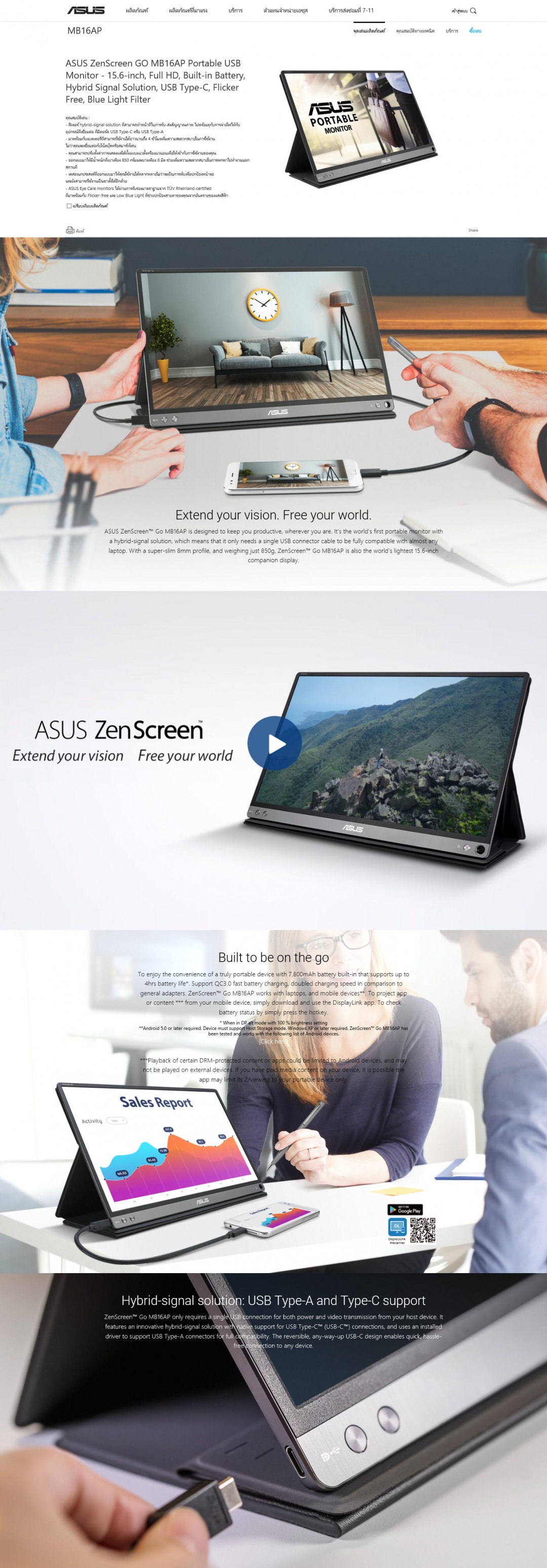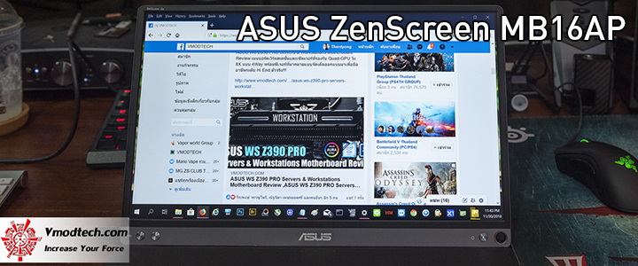 สวัสดีครับ วันนี้เราจอแสดงผลแบบพกพาจากแบรนด์ ASUS อีกรุ่นนึงมารีวิวให้ได้ชมกันครับ ASUS ZenScreen MB16AP Portable USB Monitor นั้นเป็นรุ่นที่มีคุณสมบัติเพิ่มเติมขึ้นมาจาก ZenScreen MB16AC ซึ่งจะมีแบตเตอรี่ภายในตัวแบบ lithium-polymer ขนาด 7800 mAh ติดตั้งมาในตัวเพื่อช่วยให้สามารถที่จะใช้งานได้ต่อเนื่องกับอุปกรณ์ประเภทโทรศัพท์มือถือโดยพึงพาพลังงานจากภายในตัว ZenScreen MB16AP นั่นเองที่ทำให้การใช้งานในชีวิตประจำวันนั้นเปิดกว้างมากขึ้น คือเราสามารถต่อเชื่อมกับโทรศัพท์มือถือหรือแท๊บเบล็ทเพื่อพรีเซนต์งานนอกสถานที่ได้อย่างต่อเนื่องเลย นอกนั้นมันยังเป็นจอแสดงผลภายนอกที่สามารถเชื่อมต่อกับไม่ว่าจะเป็นคอมพิวเตอร์ โน๊ตบุ๊ค เพื่อเพิ่มพื้นที่ในการแสดงผลการทำงานได้ง่ายดาย