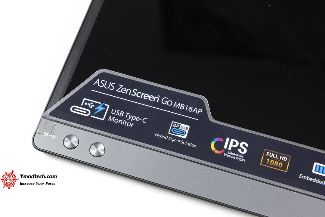 ที่มุมด้านล่างขวาของตัว ZenScreen MB16AP นั้นจะมีช่องสำหรับเสียบปากกาเพื่อตั้งจอในแนว Portrait ครับ ส่วนปุ่มกลมๆนั้นจะเป็นปุ่มเปิด/ปิดจอ