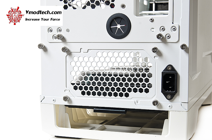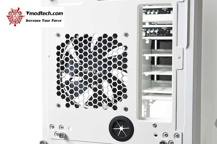 ฝาหลังมาเธอร์บอร์ดใส่เข้าไปตรงนี้ครับ ข้างๆกันเป็นพัดลม 120 mm. ระบายลมร้อนออกจากระบบครับ
