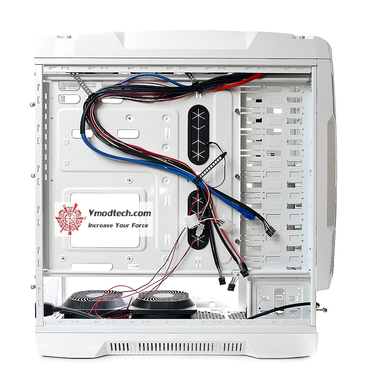 ด้านล่างของด้านหลังตรงนี้ ใส PSU ได้อีก 1 ตัวครับ รวมเป็นใส่ได้ 2 ตัวกันเลย หรือจะใสแค่ตัวเดียวก็เลือกได้เลยครับ จะใส่ตรงไหน สายไฟเมนต์จาก PSU ด้านหน้าลากสายมาทิ้งไว้ตรงนี้ครับ ตามรูปเลยครับ