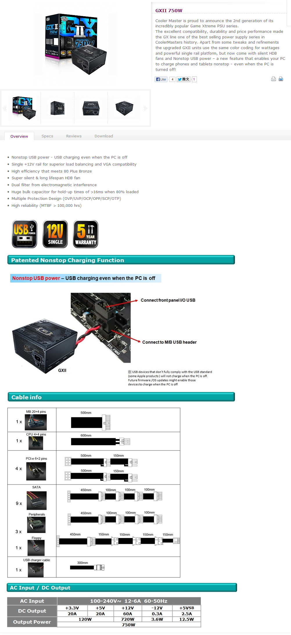 ..........สวัสดีครับวันนี้เชิญพบกับ Power Supply จาก Cooler Master กันซัก 1 รุ่นครับ กับ Cooler Master GXII 750W วันนี้ไม่พูดพล่ำทำเพลงมากครับลุยกันเลยแล้วกัน แต่ก่อนอื่น ไปชมรายละเอียดจากเว็บไซต์ผู้ผลิตก่อนครับ