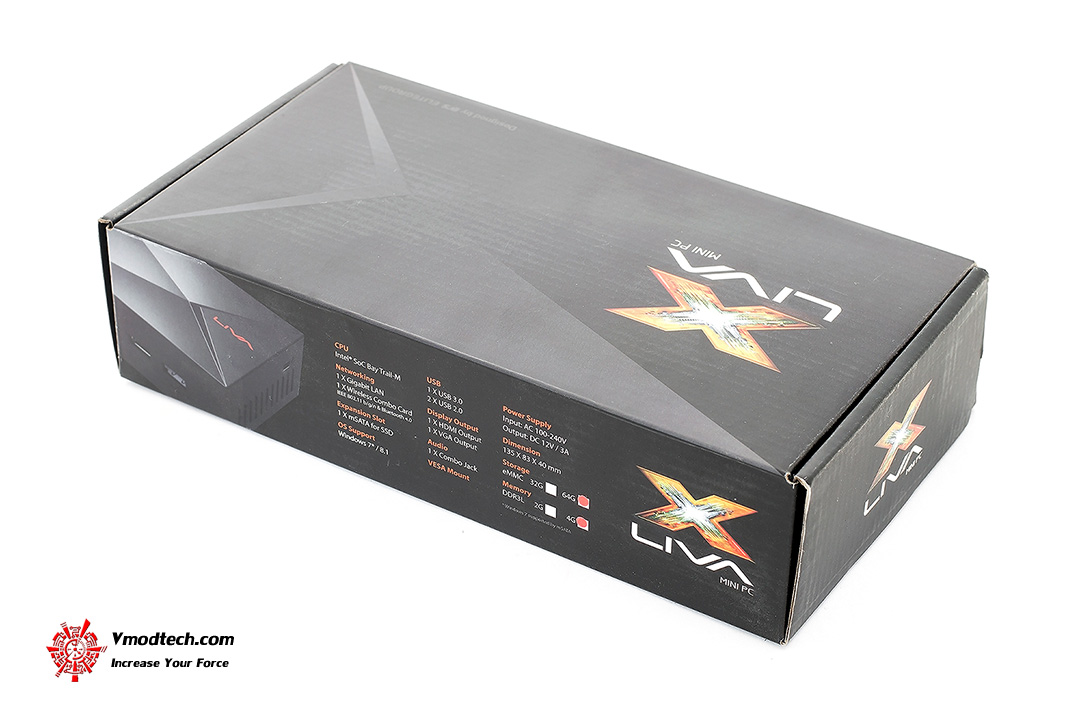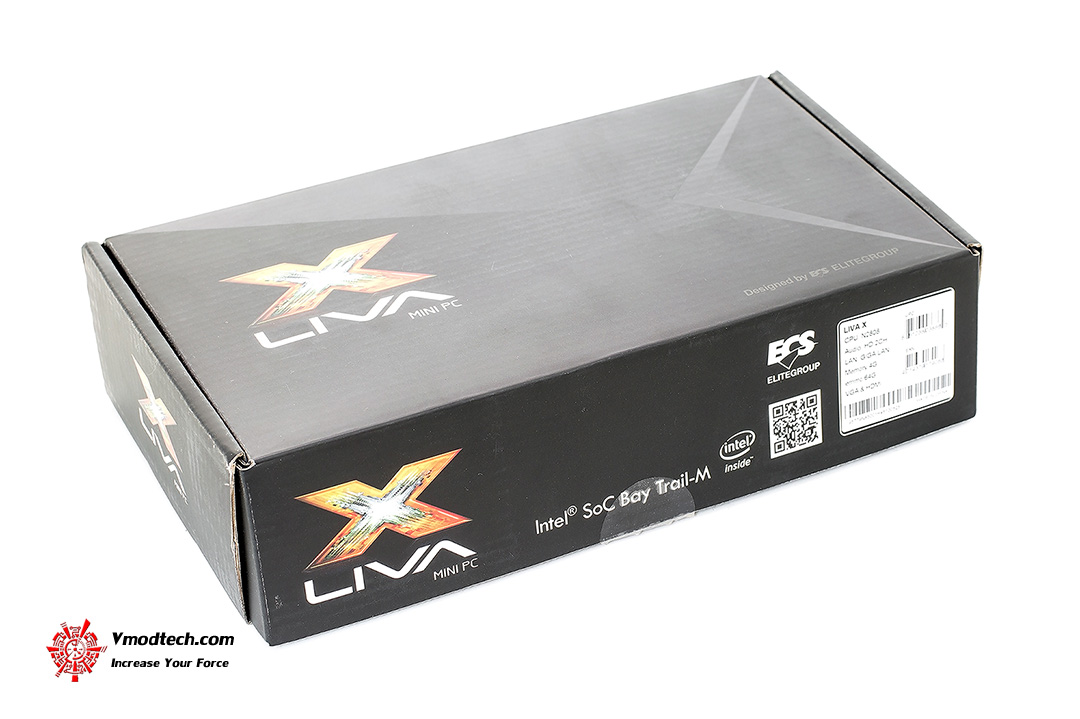 ECS - LIVA X Mini PC บรรจุอยู่ในกล่องลูกฟูกสีดำครับ