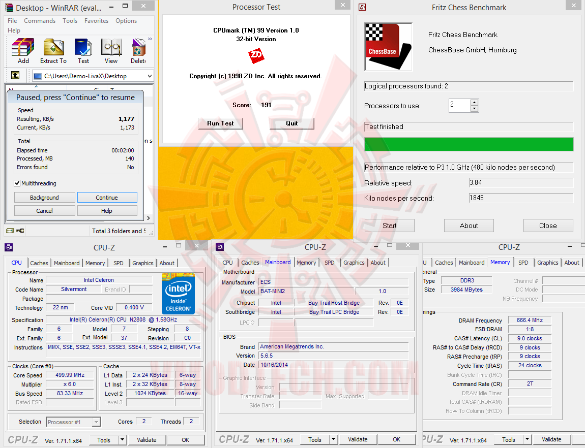 WinRAR Benchmark , CPUMark99, & Fritz Chess Benchmark