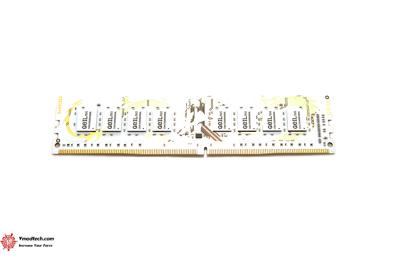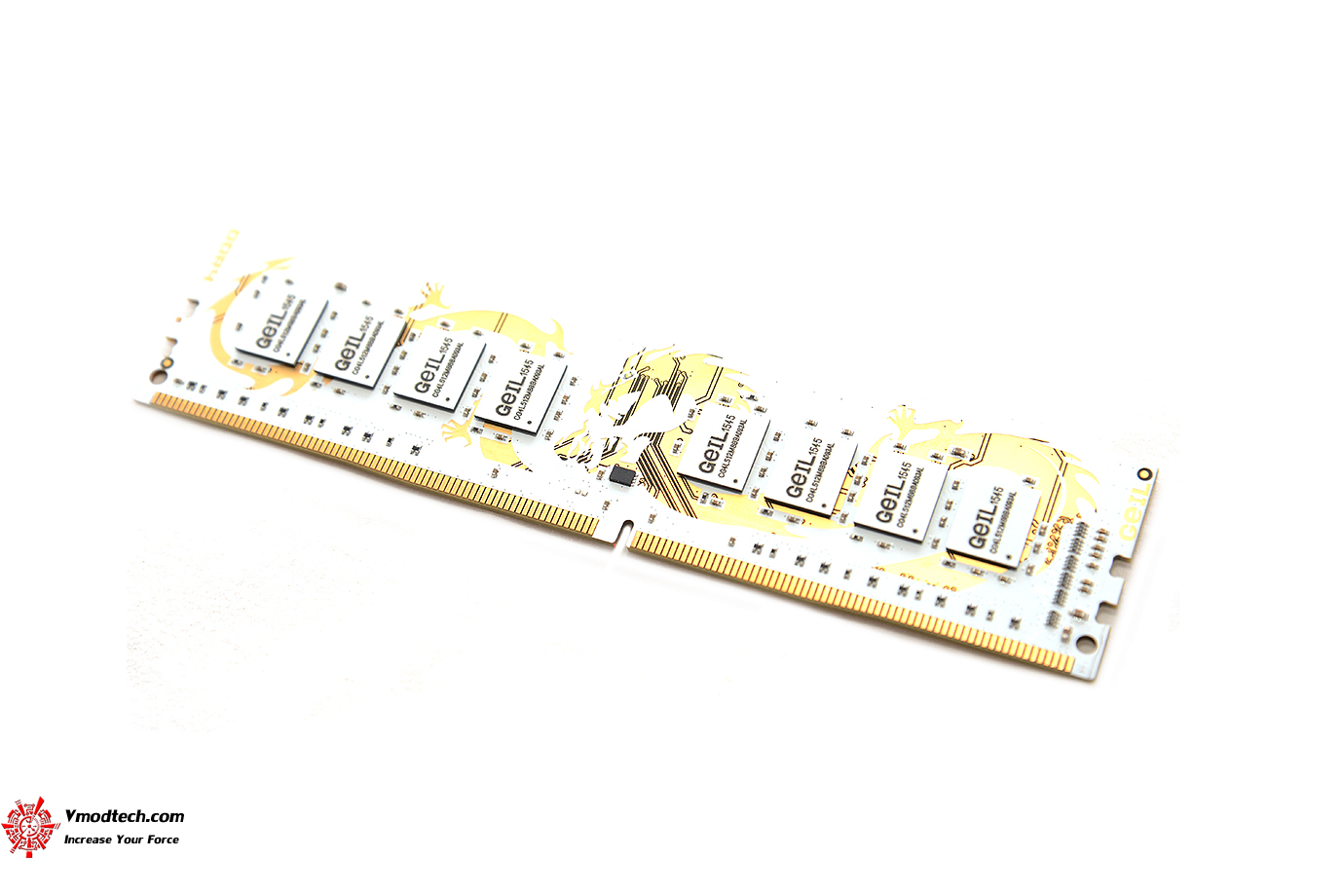 ตัวแรมนั้นเป็นสีขาวล้วนครับรวมทั้งชิบด้วยครับมีด้วยกันทั้งสองหน้าสลับด้วยลายมังกรสีทองสวยงาม ซึ่ง PCB นั้นหนาถึง 10ชั้นเลยทีเดียว ซึ่งในจุดนี้ก็คงเป็นการแก้ปัญหาเรื่องความร้อนนั่นเองครับเพราะตัวแรมไม่มีฮีตซิงค์ระบายความร้อนมาให้เลย