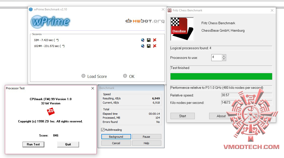 Fritz Chess Benchmark , Winrar , wPrime Benchmark v2.09