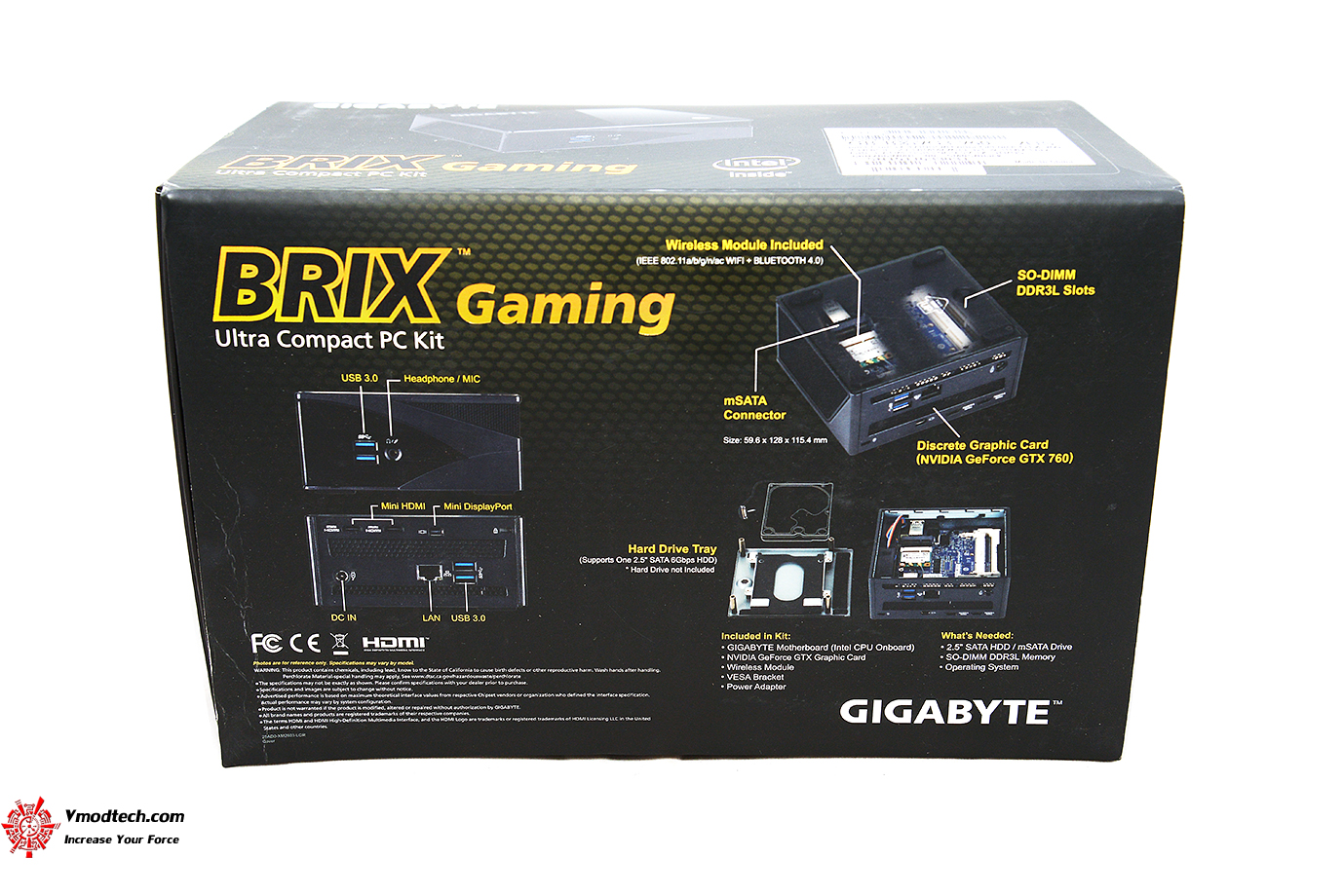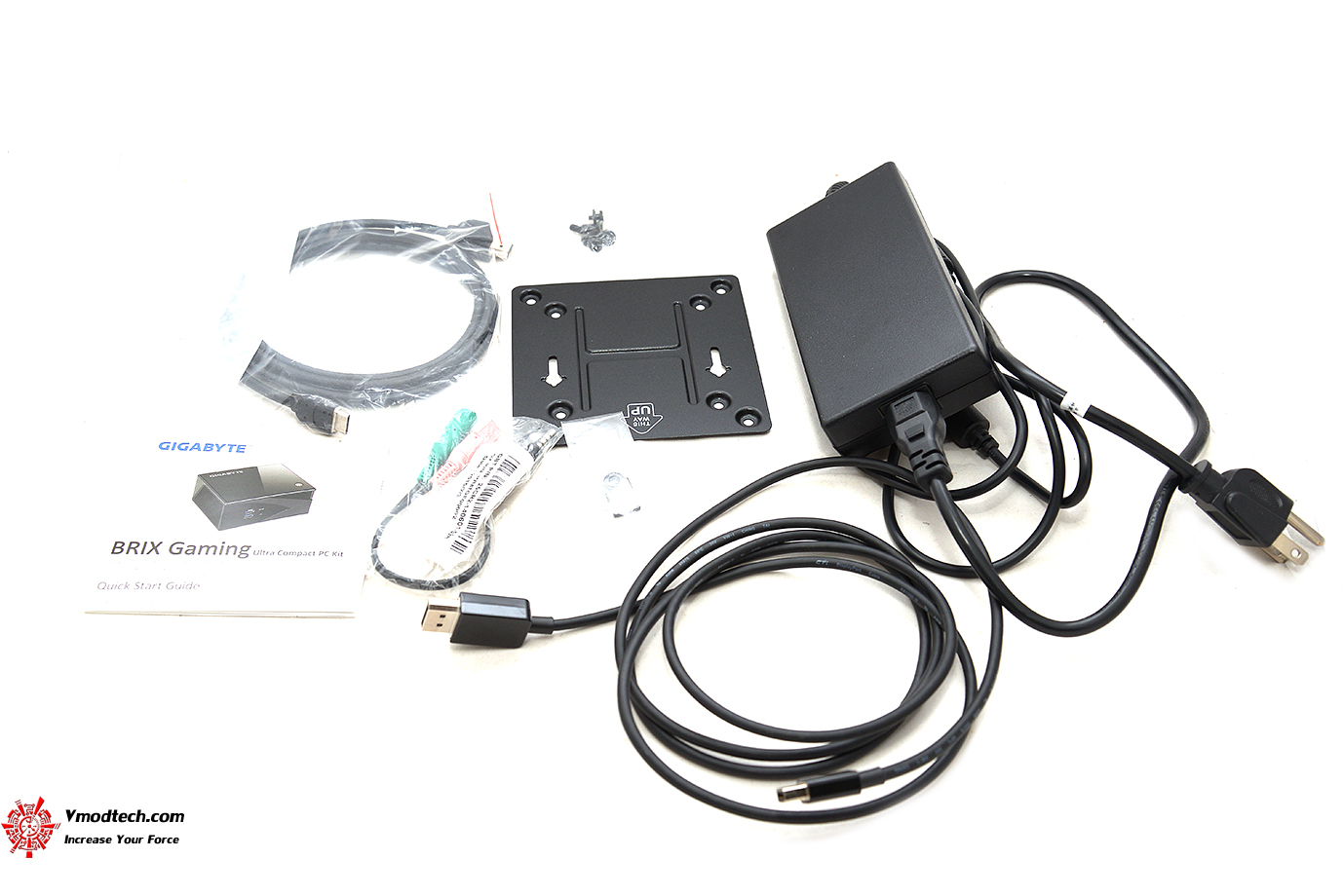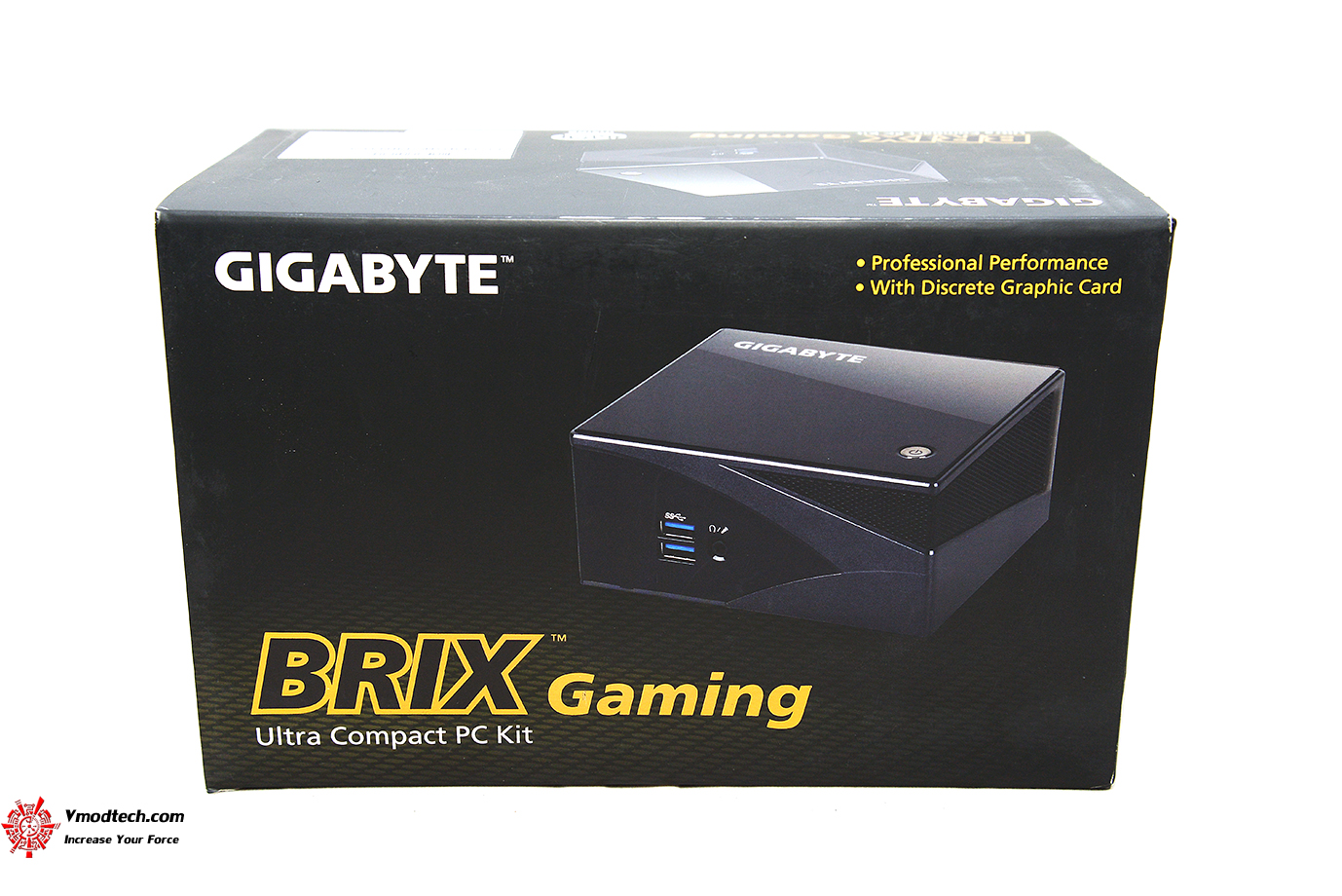 มากันในกล่องสีดำพล้อมบอกชื่อรุ่น GIGABYTE BRIX Gaming Ultra Compact PC kit