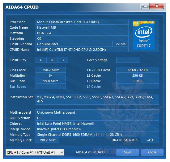 ซีพียูที่ให้มาเป็น Intel Core™ i7-4710HQ 2.5GHz / 3.50 GHz ครับ แรงกันพอได้เลยทีเดียว  ส่วนแรมที่ใช้จะต้องเป็นแรม DDR3L ไฟ 1.35v เท่านั้นนะครับ ไม่งั้นเปิดไม่ติดหรือที่เรารู้กันนั่นก็คือ DDR3 รุ่นกินไฟต่ำนั่นเอง