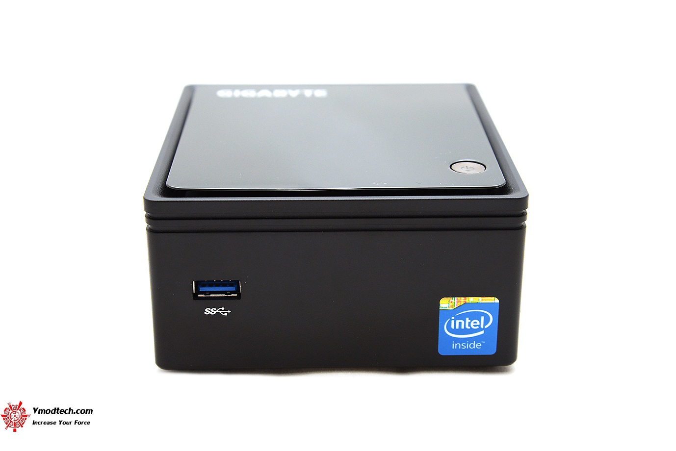 ขนาด 56.1 mm x 107.6 mm x 114.4 mm (2.21" x 4.24" x 4.5") เล็กเลยทีเดียวครับด้านหน้ามีโลโก้ Intel Celeron Processorพร้อมทั้งช่อง USB 3.0 1ช่อง