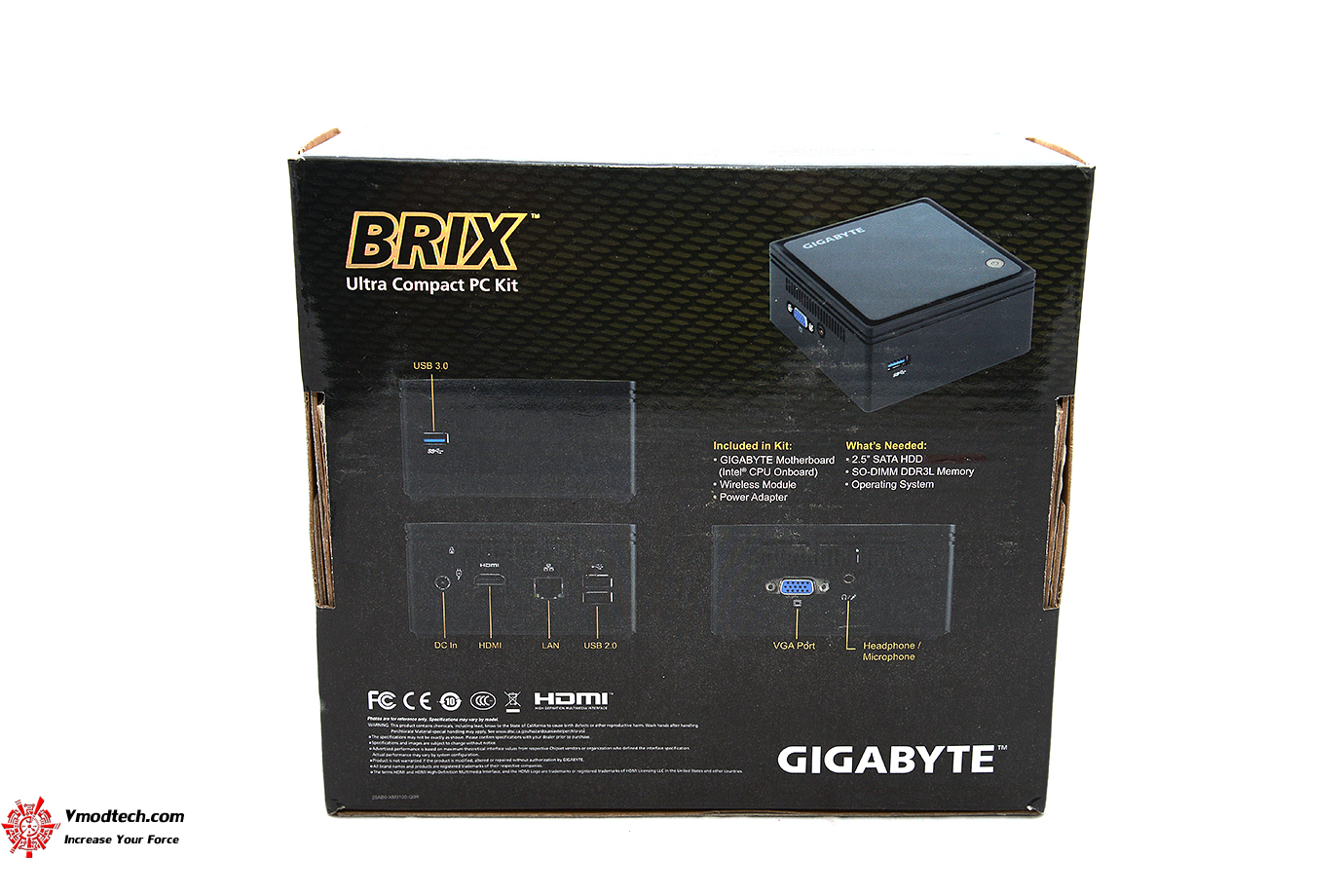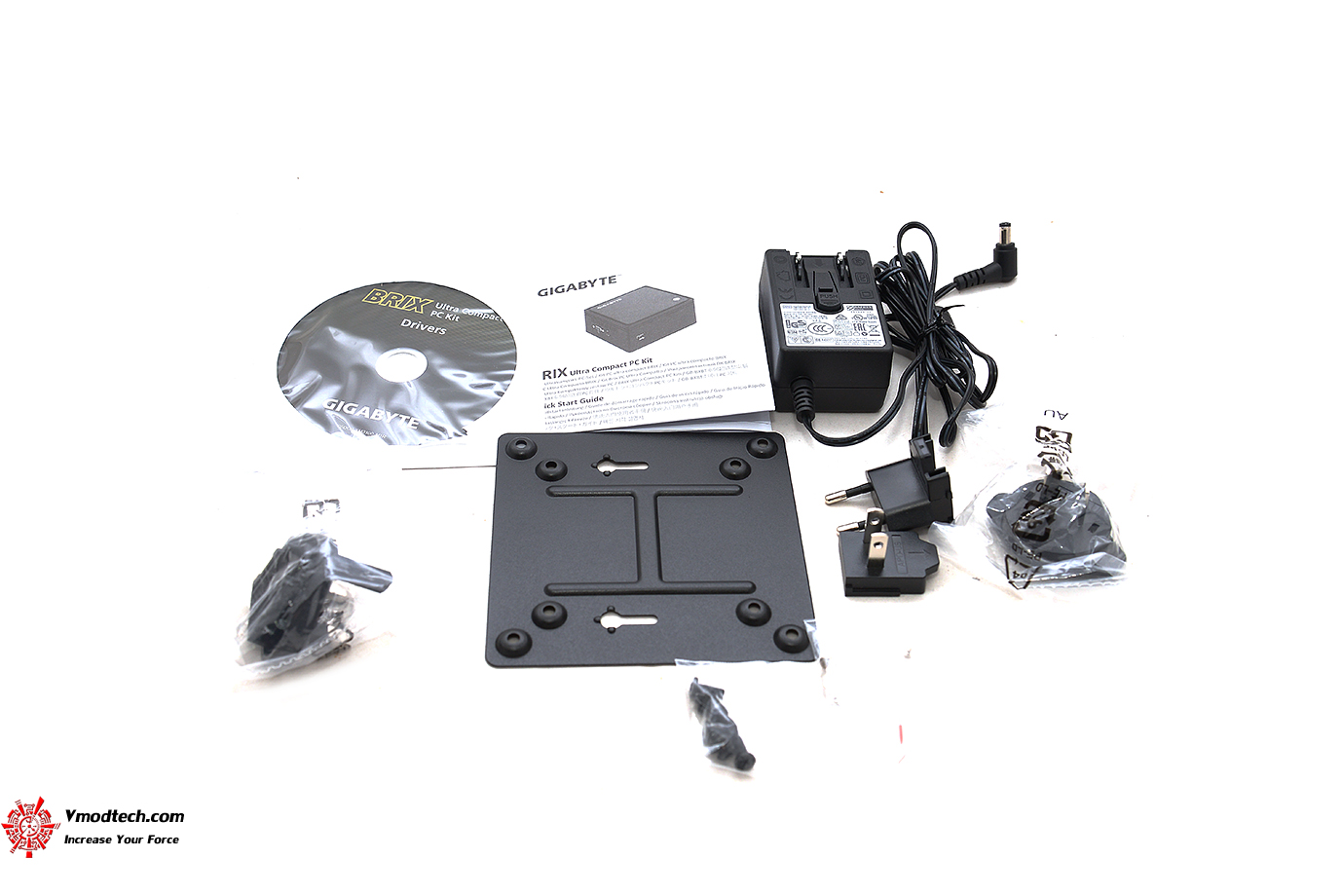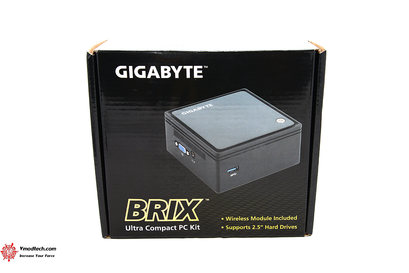มากันในกล่องสีดำพล้อมบอกชื่อรุ่น GIGABYTE BRIX Ultra Compact PC kit