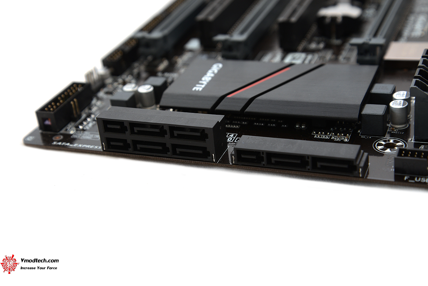 ช่อง SATA ประกอบด้วย 3 x SATA Express connectors , 6 x SATA 6Gb/s connectors รวมแล้วให้กันมา 9ช่อง กันเลยทีเดียว