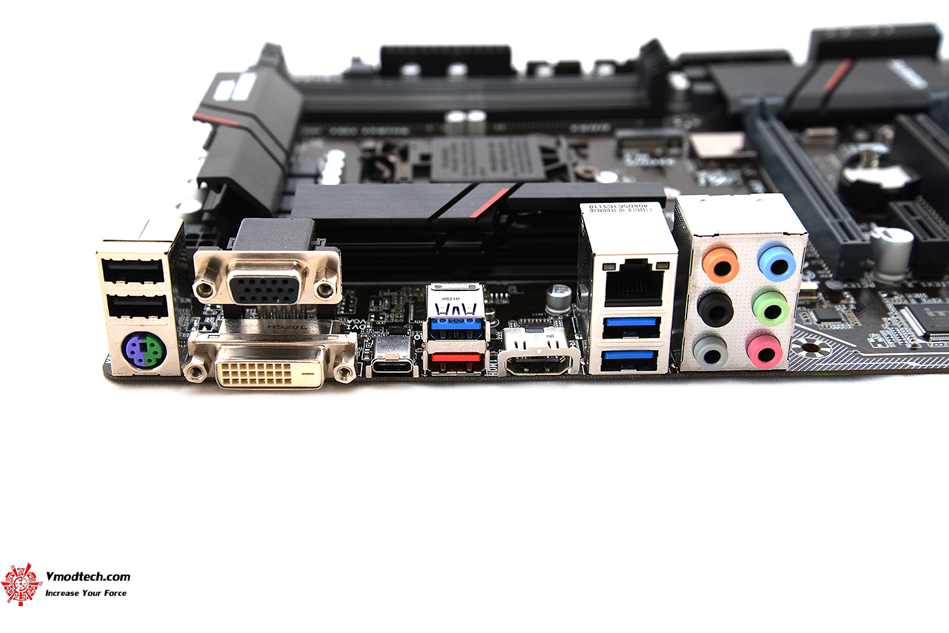 มาดูพาแนล ด้านหลังกันบ้างครับ ประกอบด้วย 1 x PS/2 keyboard/mouse port , 1 x D-Sub port , 1 x DVI-D port , 1 x HDMI port , 1 x USB Type-C™ port, with USB 3.1 support , 1 x USB 3.1 Type-A port (red), 3 x USB 3.0/2.0 ports  , 2 x USB 2.0/1.1 ports  ,1 x RJ-45 port  , 6 x audio jacks (Center/Subwoofer Speaker Out, Rear Speaker Out, Side Speaker Out, Line In, Line Out, Mic In)